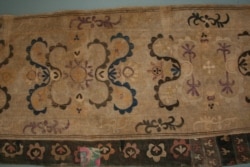“Курманжан датка – доор инсаны” деген аталыштагы көргөзмөдөгү экспонаттардан өзгөчө көңүлгө урунганы 1886-жылы Курманжан датка саймасын сайып, небересине сеп кылып берген туш кийиздин бөлүгү болду. Аны кезинде Датканын урпактары тарых музейине алып келип бериптир.