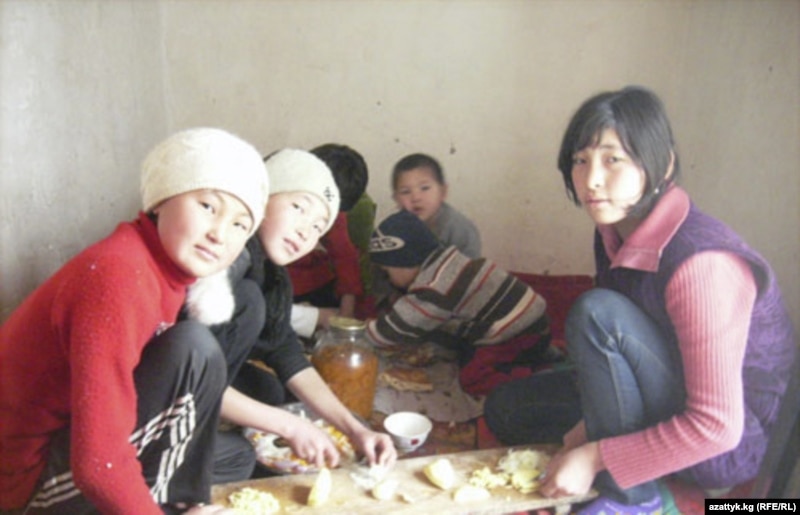 Жакында мен да Орусияга иштегени барайын деп турам. Балдар апасын сагынат, апасынын сүрөтүн карап алып ыйлашат. Ошентип капасын жазып алышат. Ыйлаганда “ыйлаба балам, апаң жакшы иштеп келип калат”,-деп сооротом. Анан өздөрү да апам эки-үч күндө келип калат деп сооронуп калышат. Кыздарым боорсок салып, нан бышырышты. Эми алыска бараткан балам жеп кетсин деп ашкабактан самса жапканы турушат. Сүйүнүчтүн инисинин 14 жаштагы кызы Ырыскан кол арага жарап калган. Ал тамактын беш түрүн даярдаганды жана тандырга нан жапканды чоң энесинен үйрөнгөн.