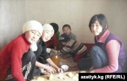 Ырыскан (оңдо) сиңдилери Жылдыз жана Кундуз менен агасы Саматка самса бышырып бергенге даярдык көрүүдө.