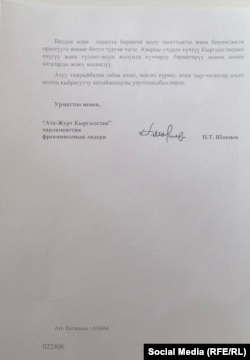 "Азаттык" каттын сүрөтүн тараткандар менен байланыша алган жок.